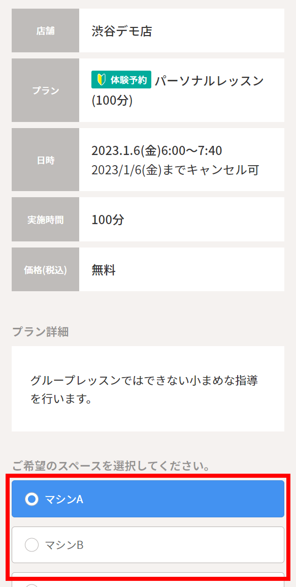 ※予約内容によりルーム(場所)の選択が無い場合もあります。